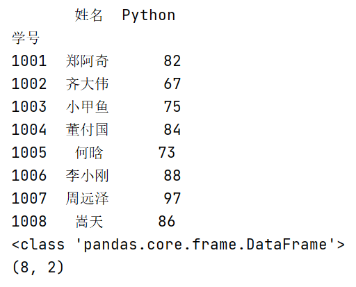 df=pd.read_table("dataFile/score.txt", sep=',',header=0,index_col=0,usecols=["学号","姓名","Python"])