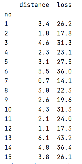 testX=pd.DataFrame({"distance":[5.2,6.1]})