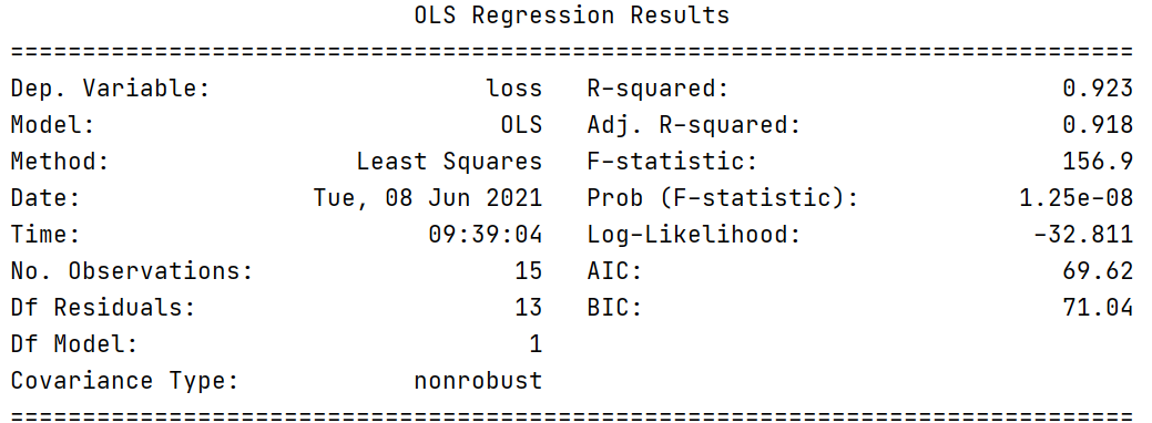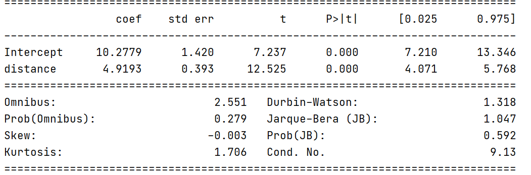 model=sm.formula.ols("loss~distance",data=data).fit()