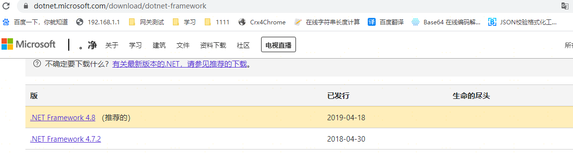 1、安装前需安装.NET Framework 4.7.2(已安装请忽略),下载地址:https://dotnet.microsoft.com/download/dotnet-framework;