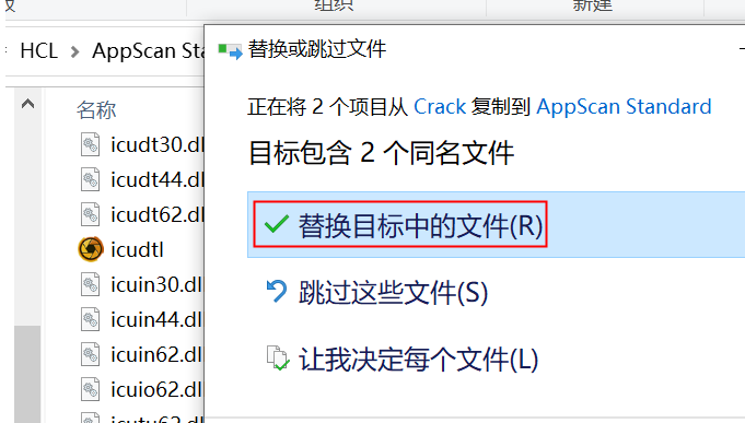 5、将破解文件 AppScanSDK.dll 和 HclLicenseProvider.dll 拷贝到安装目录D:\Program Files (x86)\HCL\AppScan Standard下替换原来的文件