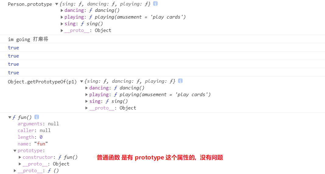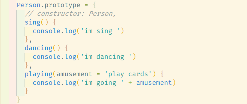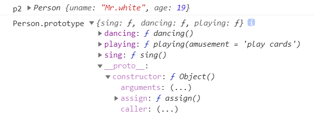 这是 之前的 prototype:: Person.prototype ==> constructor: ƒ Person(uname, age) playing: ƒ (amusement = 'play cards') */