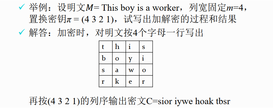 置换密码通过改变明文消息各元素的相对位置,以便打破密文的结构特性,但明文消息元素本身的取值或内容形式不变;