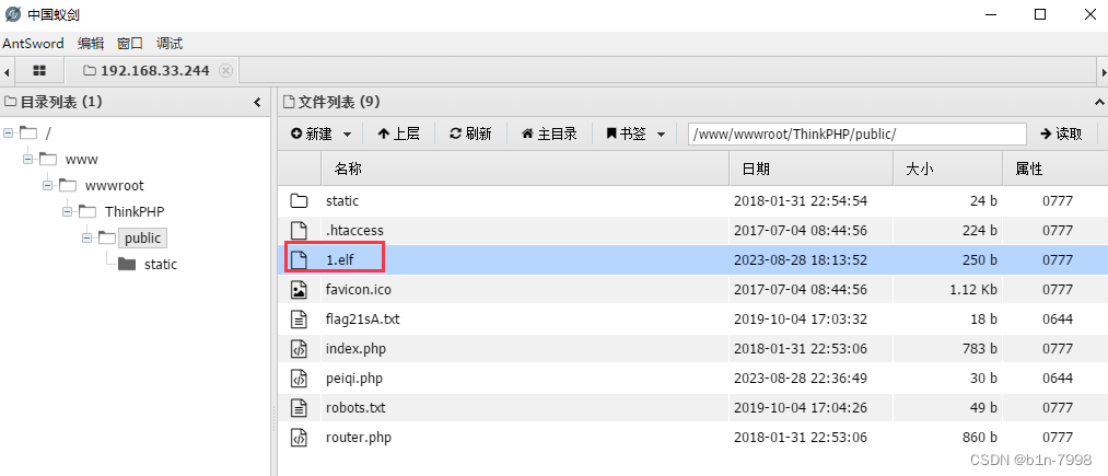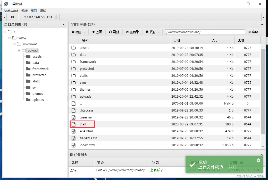 用蚁剑将生成的1.elf文件上传