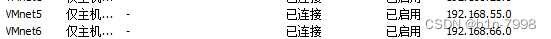 先在vmvare虚拟机的虚拟网络编辑器添加两张网卡用来搭建网络环境,我这里直接就是5网卡对应55网段,6网卡对应66网卡,这样容易记住。