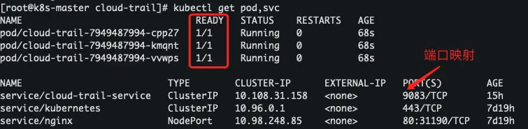 最后通过kubectl get pod,svc命令验证是否部署成功