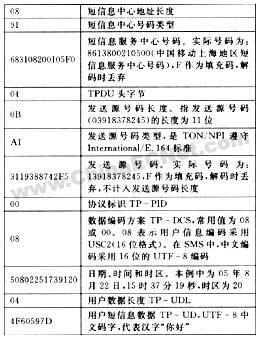 短消息的发送和接收控制模式有三种:block模式、pdu模式和text模式。使用block模式需要手机生产厂家提供驱动支持。目前,pdu模式已取代block模式,而text模式不支持中文。因此,为了系统的通用性,兼容中英文短消息的发送接收,本系统使用pdu模式来处理短消息。