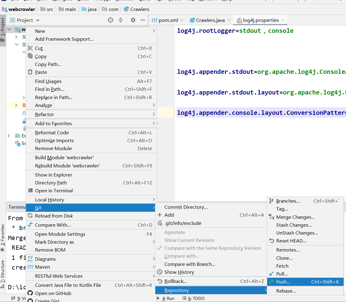 在idea软件中点击下图2的红框中的选项,依次执行如下命令,然后执行如图1的操作,就会出现Everything is up-to-date(所有的文件都是最新的),表示你本地仓库中的项目已经提交到gthub上了。
