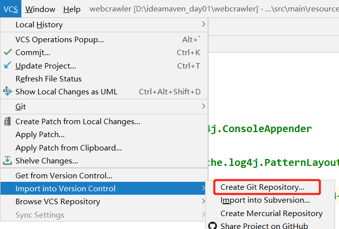 要想使用idea管理项目版本,需要先在idea的setting中配置git,点击test可以显示git版本,就是可以使用的git,然后将项目设置成本地仓库,就是下图红框中的选项(执行了这部操作,可以在项目所在的目录中看到有一个.git的文件夹,说明这一步操作成功了),然后就是执行add、commit操作,将项目提交到本地仓库。然后使用pull操作将本地仓库中的项目提交到github。
