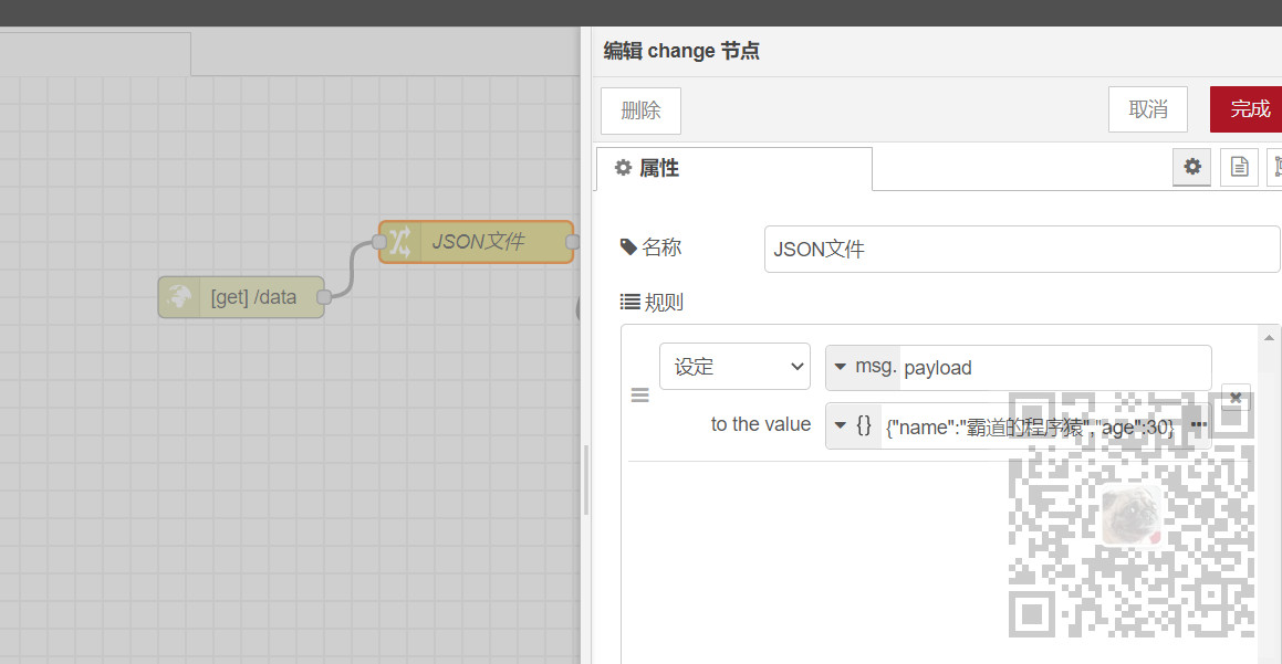 [ { "id": "f4a4d8eab7935bc8", "type": "tab", "label": "流程 3", "disabled": false, "info": "", "env": [] }, { "id": "c428312d1f6165d1", "type": "mqtt-broker", "name": "mqtt", "broker": "127.0.0.1", "port": "1883", "clientid": "", "autoConnect": true, "usetls": false, "protocolVersion": "4", "keepalive": "60", "cleansession": true, "birthTopic": "", "birthQos": "0", "birthPayload": "", "birthMsg": {}, "closeTopic": "", "closeQos": "0", "closePayload": "", "closeMsg": {}, "willTopic": "", "willQos": "0", "willPayload": "", "willMsg": {}, "sessionExpiry": "" }, { "id": "51eee50b4ec9422f", "type": "ui_group", "name": "dashboardDemo", "tab": "29ae4c620f43ee0d", "order": 1, "disp": true, "width": "6", "collapse": false, "className": "" }, { "id": "29ae4c620f43ee0d", "type": "ui_tab", "name": "Home", "icon": "dashboard", "disabled": false, "hidden": false }, { "id": "a506c767a5c1edbd", "type": "ui_base", "theme": { "name": "theme-light", "lightTheme": { "default": "#0094CE", "baseColor": "#0094CE", "baseFont": "-apple-system,BlinkMacSystemFont,Segoe UI,Roboto,Oxygen-Sans,Ubuntu,Cantarell,Helvetica Neue,sans-serif", "edited": true, "reset": false }, "darkTheme": { "default": "#097479", "baseColor": "#097479", "baseFont": "-apple-system,BlinkMacSystemFont,Segoe UI,Roboto,Oxygen-Sans,Ubuntu,Cantarell,Helvetica Neue,sans-serif", "edited": false }, "customTheme": { "name": "Untitled Theme 1", "default": "#4B7930", "baseColor": "#4B7930", "baseFont": "-apple-system,BlinkMacSystemFont,Segoe UI,Roboto,Oxygen-Sans,Ubuntu,Cantarell,Helvetica Neue,sans-serif" }, "themeState": { "base-color": { "default": "#0094CE", "value": "#0094CE", "edited": false }, "page-titlebar-backgroundColor": { "value": "#0094CE", "edited": false }, "page-backgroundColor": { "value": "#fafafa", "edited": false }, "page-sidebar-backgroundColor": { "value": "#ffffff", "edited": false }, "group-textColor": { "value": "#1bbfff", "edited": false }, "group-borderColor": { "value": "#ffffff", "edited": false }, "group-backgroundColor": { "value": "#ffffff", "edited": false }, "widget-textColor": { "value": "#111111", "edited": false }, "widget-backgroundColor": { "value": "#0094ce", "edited": false }, "widget-borderColor": { "value": "#ffffff", "edited": false }, "base-font": { "value": "-apple-system,BlinkMacSystemFont,Segoe UI,Roboto,Oxygen-Sans,Ubuntu,Cantarell,Helvetica Neue,sans-serif" } }, "angularTheme": { "primary": "indigo", "accents": "blue", "warn": "red", "background": "grey", "palette": "light" } }, "site": { "name": "Node-RED Dashboard", "hideToolbar": "false", "allowSwipe": "false", "lockMenu": "false", "allowTempTheme": "true", "dateFormat": "DD/MM/YYYY", "sizes": { "sx": 48, "sy": 48, "gx": 6, "gy": 6, "cx": 6, "cy": 6, "px": 0, "py": 0 } } }, { "id": "248cbbb0.18e794", "type": "ui_group", "name": "MyGroup", "tab": "3f79c420.cfc1bc", "order": 1, "disp": true, "width": "6", "collapse": false }, { "id": "3f79c420.cfc1bc", "type": "ui_tab", "name": "Home", "icon": "dashboard", "disabled": false, "hidden": false }, { "id": "a0954be5.a7f7e8", "type": "ui_group", "name": "MyInput", "tab": "3f79c420.cfc1bc", "order": 2, "disp": true, "width": "6", "collapse": false }, { "id": "508bd6f8398ab80f", "type": "ui_group", "name": "OpenWeatherMap", "tab": "3f79c420.cfc1bc", "order": 3, "disp": true, "width": "6", "collapse": false }, { "id": "8824dea1.83e31", "type": "websocket-client", "path": "ws://localhost:9898/", "tls": "", "wholemsg": "false" }, { "id": "a67478c1.279378", "type": "http in", "z": "f4a4d8eab7935bc8", "name": "", "url": "/data", "method": "get", "upload": false, "swaggerDoc": "", "x": 260, "y": 160, "wires": [ [ "7b94773d.12e1f8" ] ] }, { "id": "c8b16808.f5e888", "type": "template", "z": "f4a4d8eab7935bc8", "name": "HTML网页", "field": "payload", "fieldType": "msg", "format": "handlebars", "syntax": "mustache", "template": "<html>\n <head>\n <title>JSON Object</title>\n </head>\n <body>\n <h1>姓名: {{payload.name}}</h1>\n <h2>年齡: {{payload.age}}</h2>\n </body>\n</html>", "output": "str", "x": 590, "y": 180, "wires": [ [ "aba2c9b4.da52c8" ] ] }, { "id": "aba2c9b4.da52c8", "type": "http response", "z": "f4a4d8eab7935bc8", "name": "", "statusCode": "", "headers": {}, "x": 730, "y": 140, "wires": [] }, { "id": "7b94773d.12e1f8", "type": "change", "z": "f4a4d8eab7935bc8", "name": "JSON文件", "rules": [ { "t": "set", "p": "payload", "pt": "msg", "to": "{\"name\":\"霸道的程序猿\",\"age\":30}", "tot": "json" } ], "action": "", "property": "", "from": "", "to": "", "reg": false, "x": 430, "y": 120, "wires": [ [ "c8b16808.f5e888" ] ] } ]