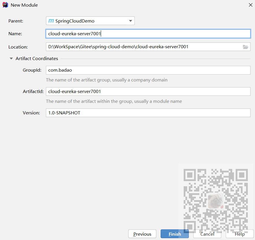 参考上面新建子模块的流程,在父级项目下新建子模块
