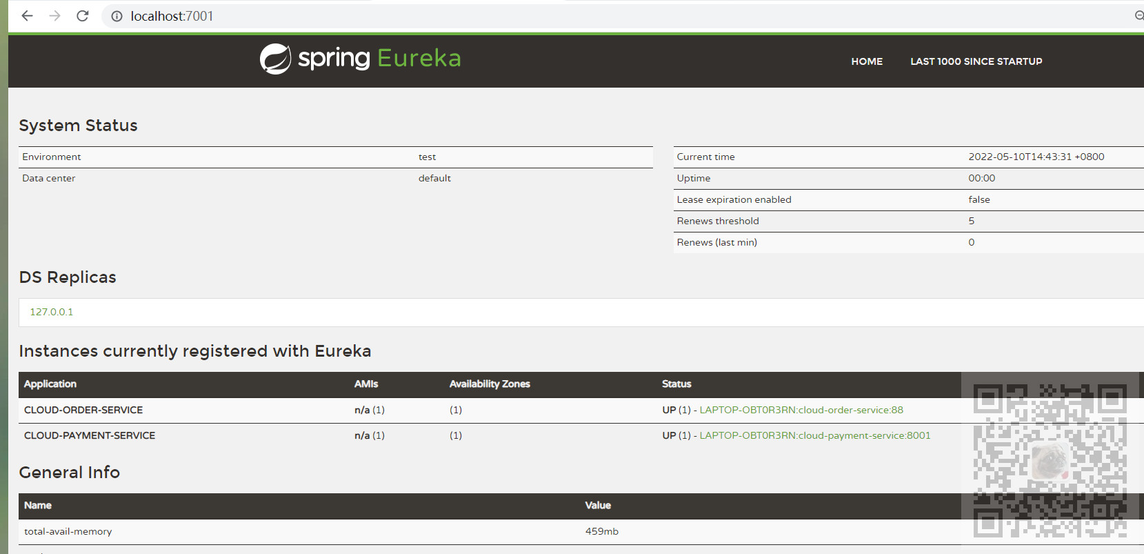 可以看到Eureka的Server端启动成功,并且两个服务也已经注册成功