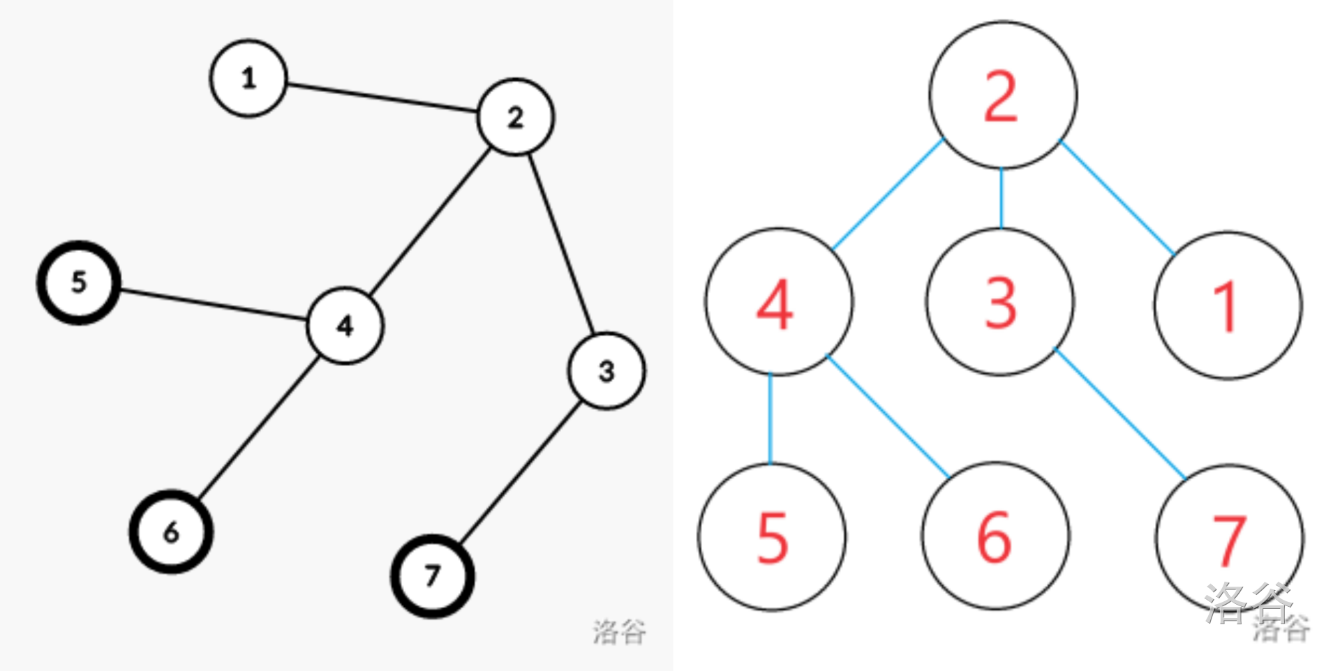 用结构体 \(\text{vector}\) 模拟树,将每个元素的度数和原次序绑定,贪心取入度最大点建树