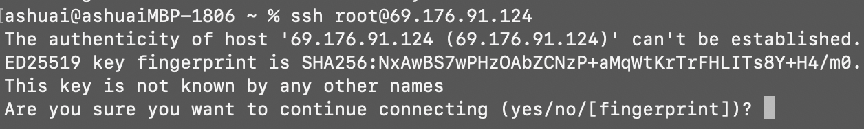 首次ssh连接会有一些小插曲,如果屏幕出现这样的情况