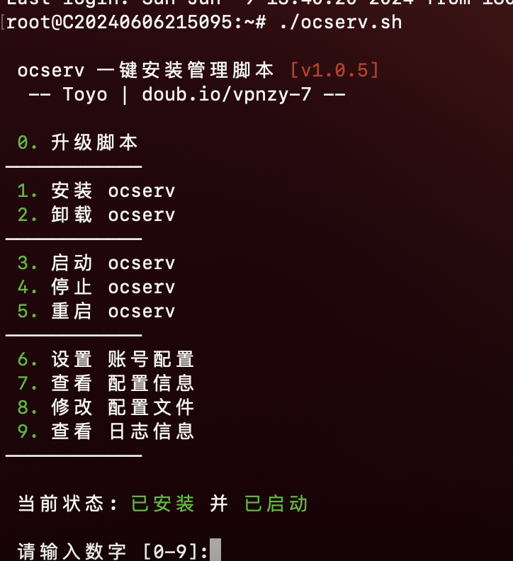 在确保成功ssh登录后,我们即将开始安装ocserv进程