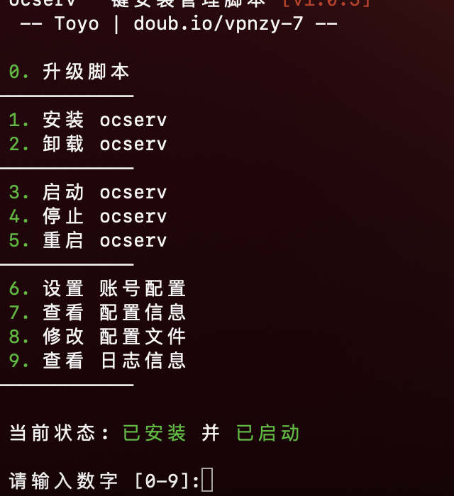wget -N --no-check-certificate https://raw.githubusercontent.com/ToyoDAdoubiBackup/doubi/master/ocserv.sh && chmod +x ocserv.sh && bash ocserv.sh