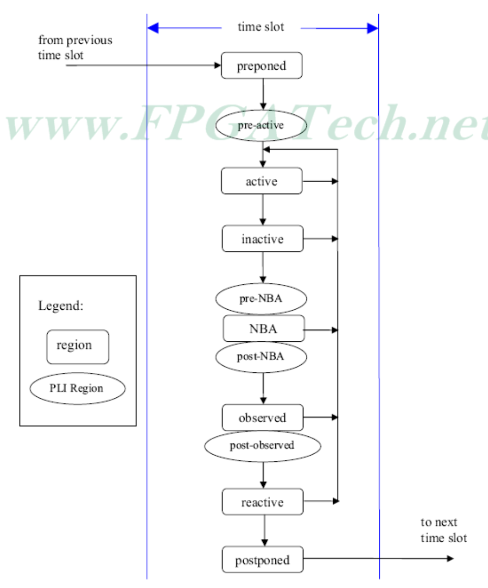 断言中使用的变量值在一个时隙的Preponed区域被采样,并且断言在Observe区域被计算。