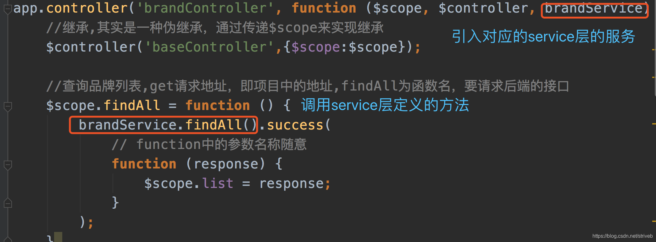 然后就可以在controller层中调用这些方法,并进行一些逻辑的书写,如下图: