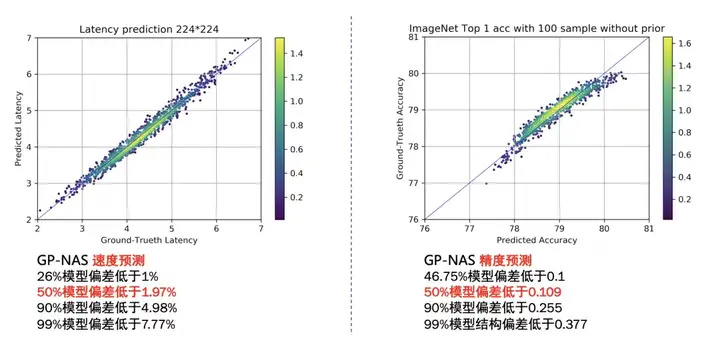 针对不同平台存储容量和算力不同,从训练好的UFO超网络模型中选择不同大小和计算量的子网络进行部署。由于超网络中子网络的数据众多,每个子网逐一测试精度和延时并不现实,因此在UFO中,使用了GP-NAS【1】中的基于高斯过程的超参数超参估计技术,只需采样超网络中少量子网络进行评估,即可准确预测出其他网络的精度和速度。