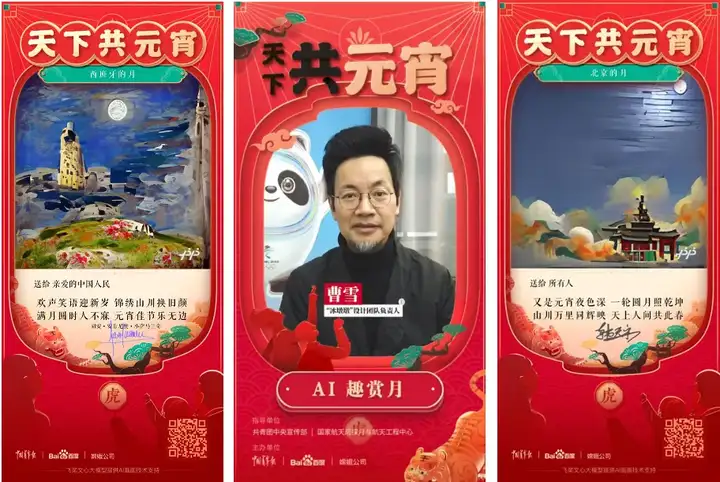 2月15日元宵节,在共青团中央宣传部、国家航天局探月与航天工程中心指导下,中国青年报社联合百度共同推出“天下共元宵”线上互动活动。互动以“嫦娥一号”传回的首张全月影像图为原型,使用AI生成个性化画作,让千万网友首次直观体验到百度文心大模型的AIGC(AI Generated Content)能力。活动吸引国际奥委会北京冬奥会协调委员会主席胡安·安东尼奥·小萨马兰奇、“冰墩墩”设计团队负责人曹雪、短道速滑运动员韩天宇等国内外各界人士参与,纷纷晒出他们用百度AI画出的月景美图。