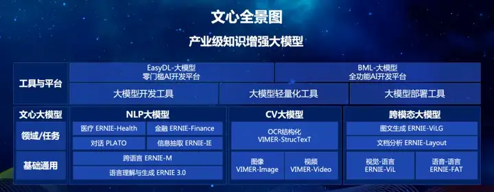 据介绍,文心大模型目前包括NLP(自然语言处理)大模型、CV(计算机视觉)大模型、跨模态大模型等基础通用大模型,还包含面向重点领域、重点任务的大模型,以及丰富的工具与平台,成为千行百业AI开发的首选基座大模型。目前,文心大模型已通过飞桨、百度智能云平台开源开放,大规模应用于互联网、工业、能源、金融、通信、媒体、教育等众多领域。