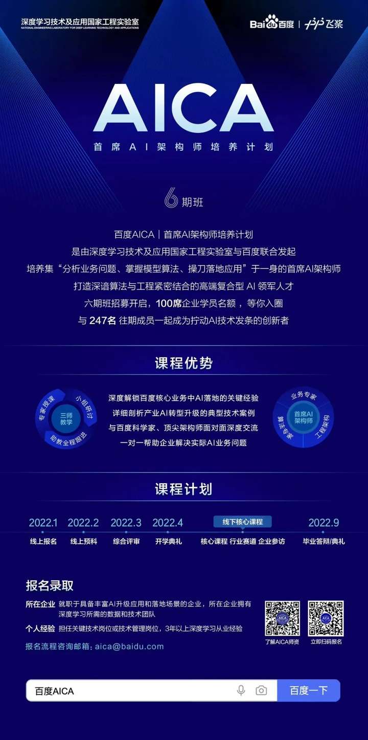 扫描下方二维码关注【飞桨企业俱乐部】回复“AICA”获取六期报名信息