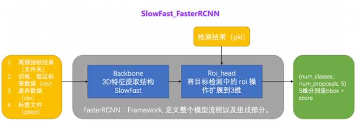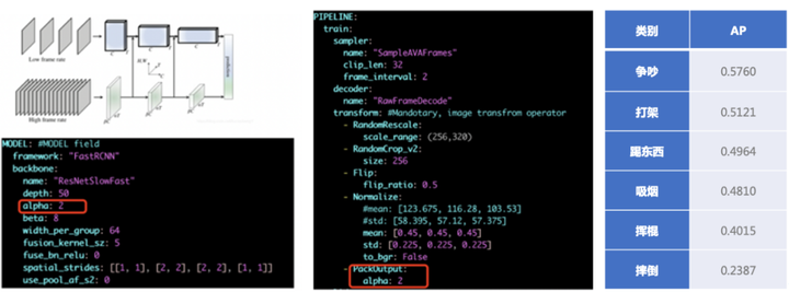 最终选用了业界领先的基于时空信息的SlowFast_FasterRCNN模型。相比于基于骨骼点的模型,该模型对遮挡等场景更加鲁棒;相比于基于目标检测的模型,该模型能够提取时序特征,解决单张图片很难判别行为类型的问题。
