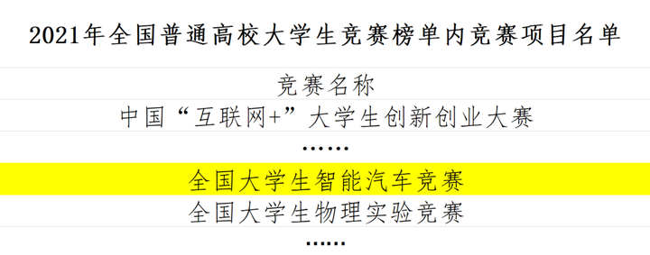 「全国大学生智能汽车竞赛」是教育部倡导的大学生科技A类竞赛,是2021年全国普通高校大学生竞赛榜单内竞赛,中国高等教育学会将其列为含金量最高的大学生竞赛之一。在全国数百所高校的支持下,全国大学生智能汽车竞赛至今已成功举办了十六届,参赛学生总规模超过35万人次,是提升学生创新实践能力和培养团队精神的国家级创意性科技竞赛。