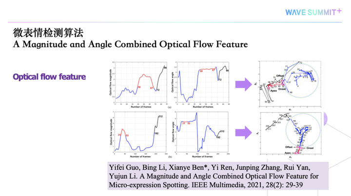 用这个方法就可以区分微表情、没有表情、宏表情,也可以用这种方式来做微表情的检测。我们还提出了不同的决策准则,比如有积极的准则,有保守的准则,最后在公开的数据库上,该方法得到了非常好的性能。