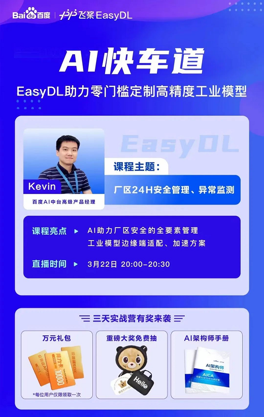 飞桨EasyDL工业行业AI落地案例系列课程来啦!本次课程将聚焦厂区24H安全管理、异常监测,并配套课程案例的应用实操,帮助企业降低AI落地门槛,助力企业进行数智化转型。3月22日晚8点,锁定百度飞桨EasyDL直播间!