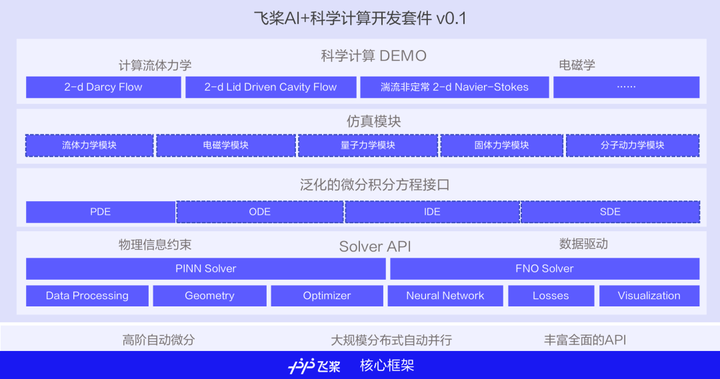 百度飞桨在2021年12月正式发布飞桨科学计算套件 0.1版本,依托底层核心框架在高阶自动微分功能上的技术革新,快速高质量推进飞桨在AI+科学计算领域的能力建设。