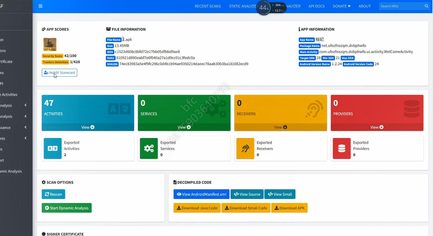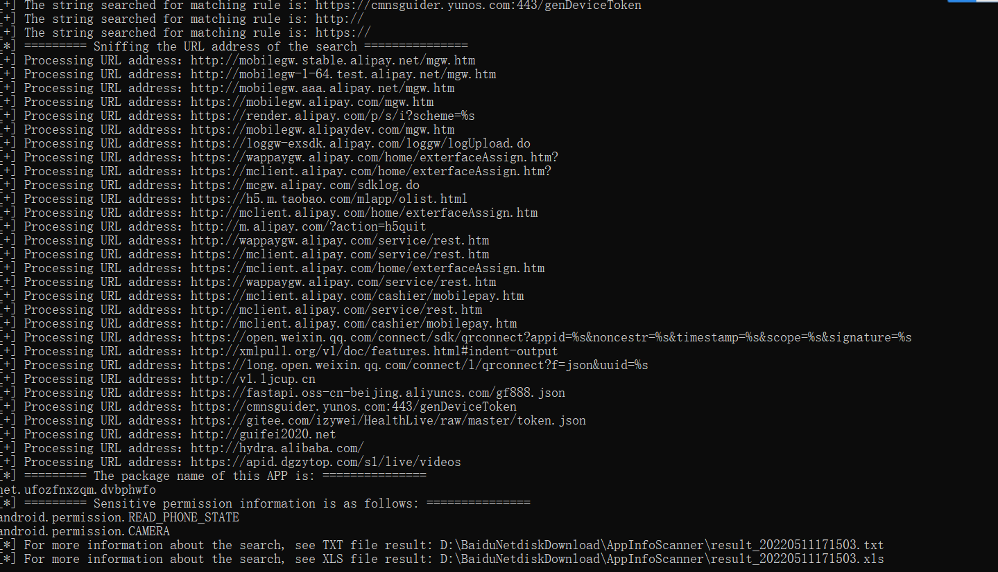 AppinfoScanner一款适用于以HW行动/红队/渗透测试团队为场景的移动端(Android、iOS、WEB、H5、静态网站)信息收集扫描工具,可以帮助渗透测试工程师、攻击队成员、红队成员快速收集到移动端或者静态WEB站点中关键的资产信息并提供基本的信息输出,如:Title、Domain、CDN、指纹信息、状态信息等。