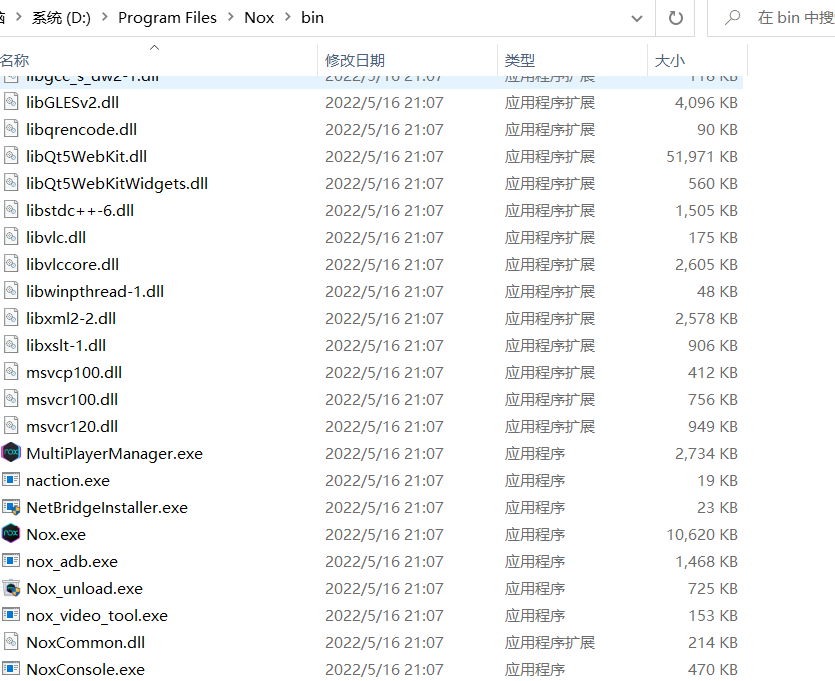 安装的adb的版本和夜神模拟器里的adb的版本一致,打开夜神模拟器安装目录,进入bin 在cmd
