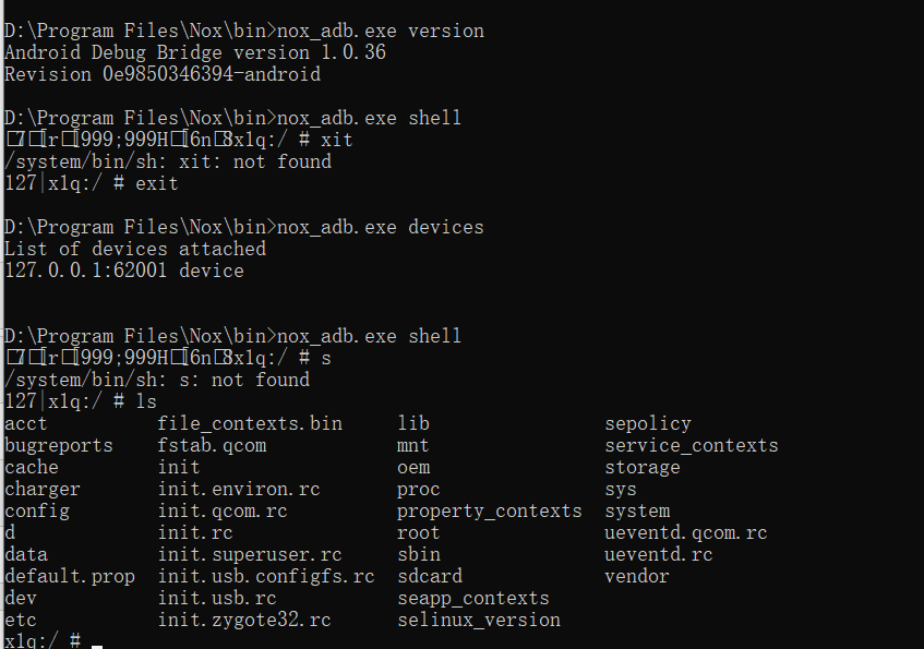 用adb连接夜神模拟器,用cmd查看nox_adb的版本号,