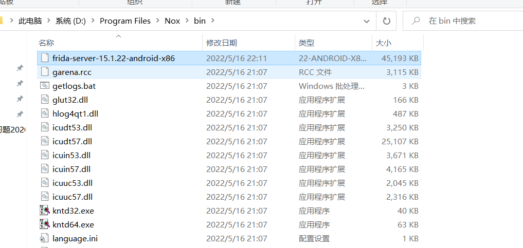 nox_adb.exe push frida-server-15.1.22-android-x86 /data/local/frida-server
