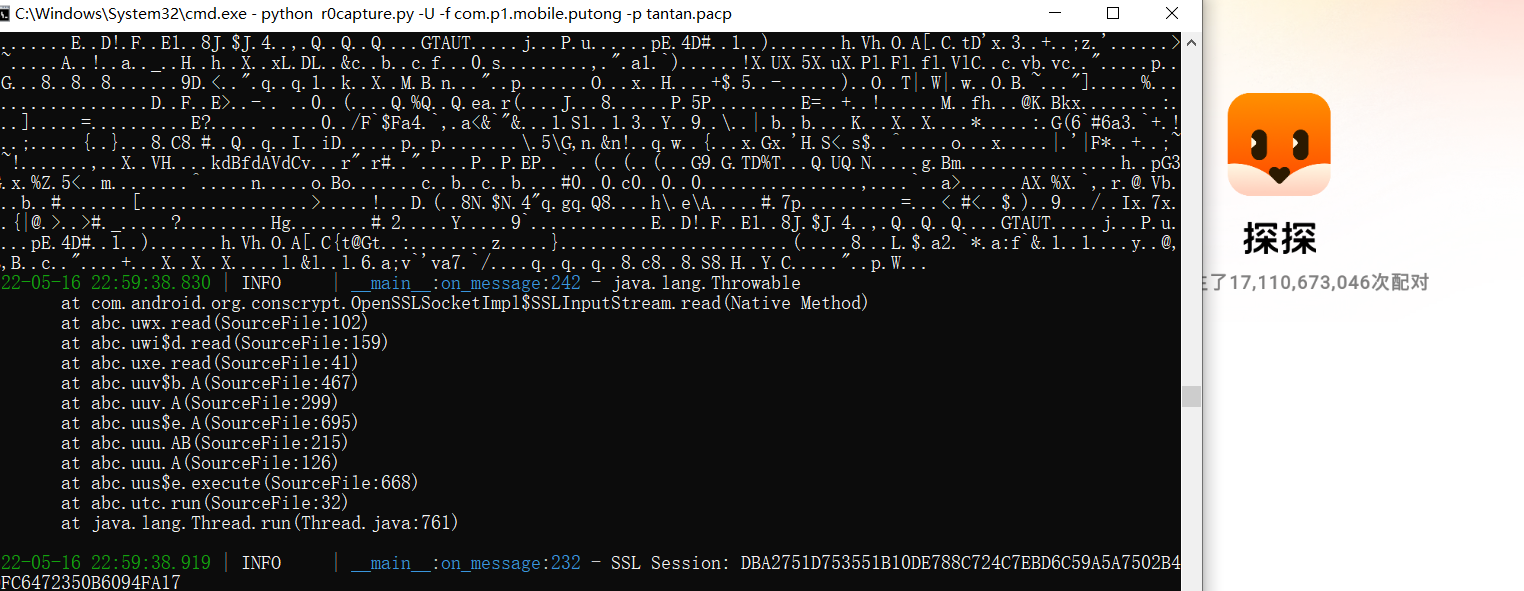 python r0capture.py -U -f com.p1.mobile.putong -p tantan.pacp