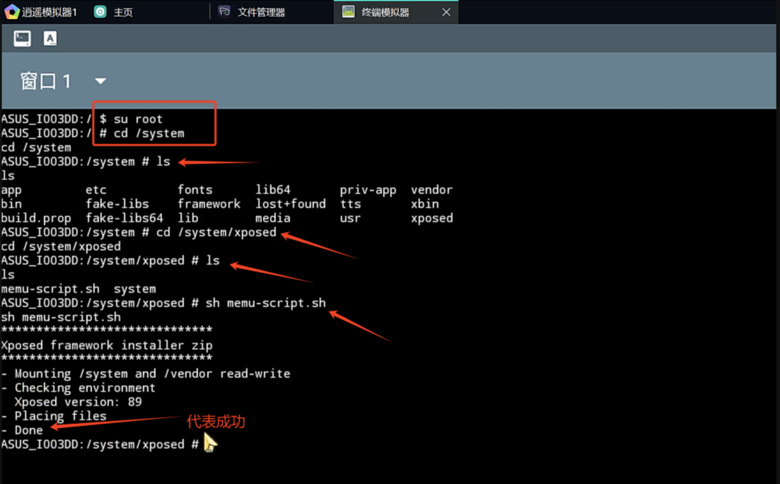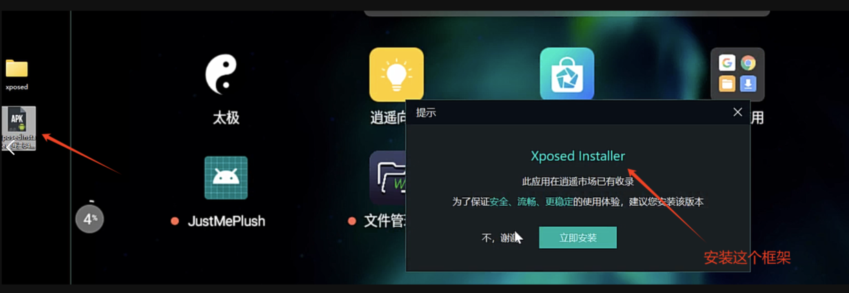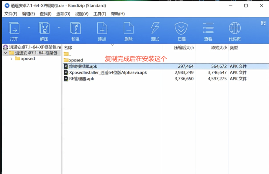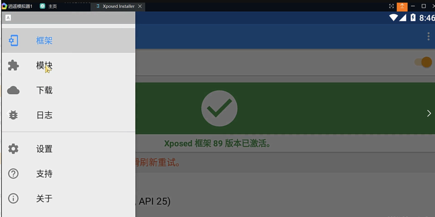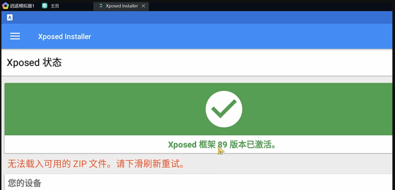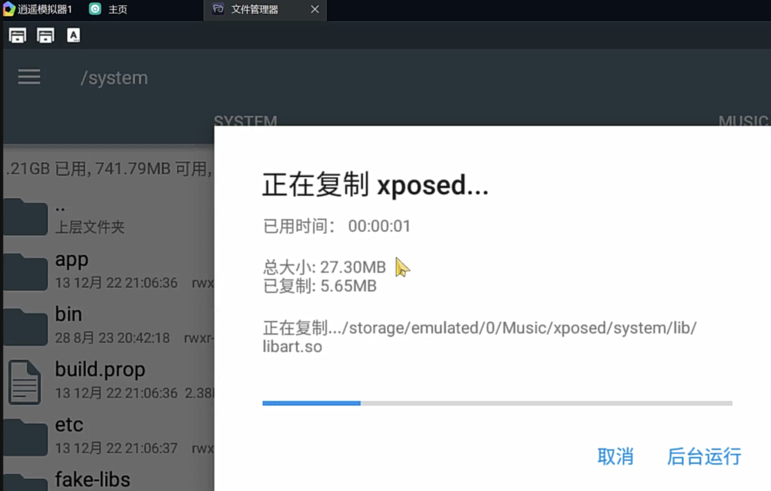 逍遥模拟器需要将xposed复制到手机里,逍遥模拟器里安不了