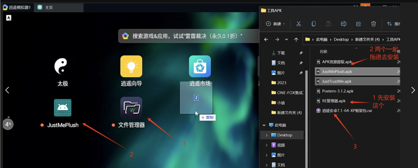 注:注意逍遥模拟器版本不要太高,否则安装会失败