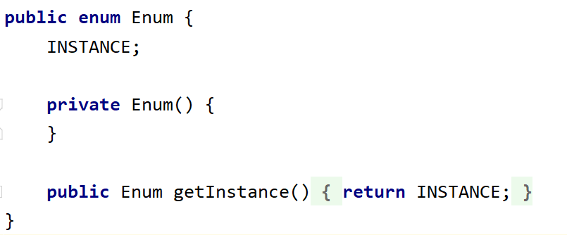 以上就是使用枚举的方式实现单例模式,它的确可以保证一个类只有一个实例对象。我们现在唯一担心的就是反射。反射那么厉害,它可以破坏这种单例模式吗?让我们来试一下。