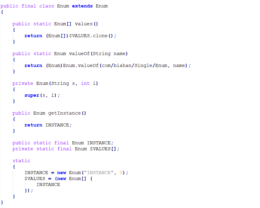 jad反编译后的文件最准确,所以Enum类的构造器是