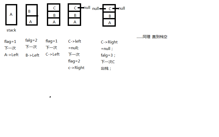 然后当flag==1;表示需要建立栈顶元素的左孩子;