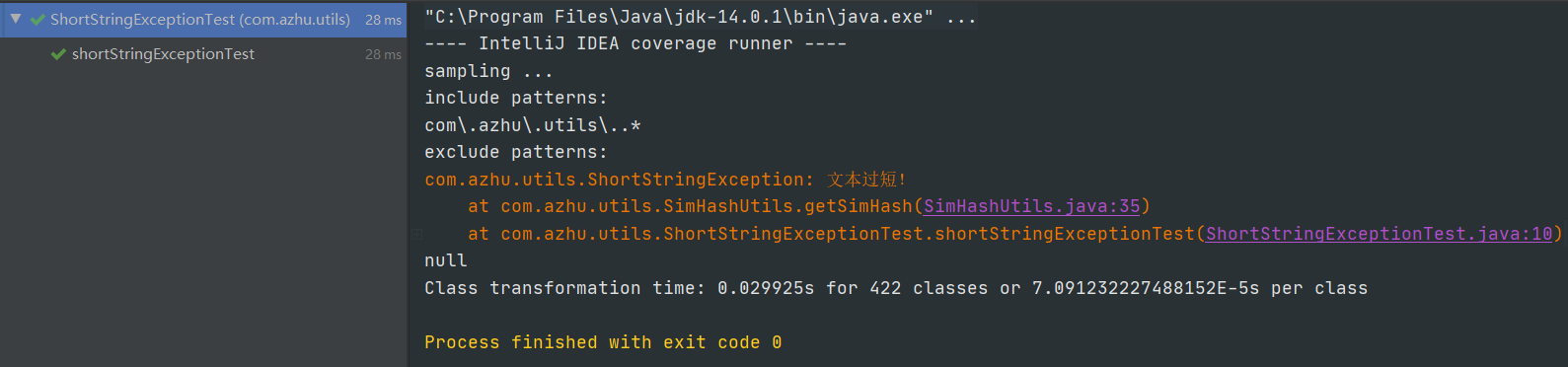 实现了一个处理这个异常的类:ShortStringException(继承了Exception)