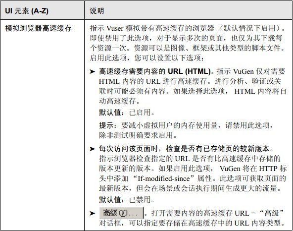 模拟浏览器缓存 指Vuser模拟浏览器带缓存。 默认情况下,启用缓存模拟。如果禁用此选项,则所有Vuser使用浏览器不缓存功能。
