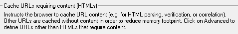 这个选项是指Vugen仅缓存网页的一些必要信息,这些信息可以是一些必须的验证信息、分析数据或者关联数据,当你勾选了这项后,这些信息自动被缓存(默认是启用)。