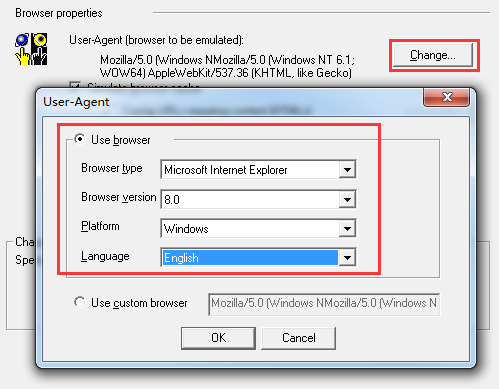 use custom browser:自定义UA把需要的内容写到里面,更加灵活,可以支持chrome。