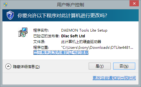 这个证书可以确保这个应用程序是由Disc Soft Ltd公司发布的,并且没有被任何第三方篡改过。这意味着,这个程序包含病毒的可能性取决于Disc Soft Ltd这个公司的节操。当然一般国外软件公司的节操我还是信得过的。所以我可以放心的点击是。